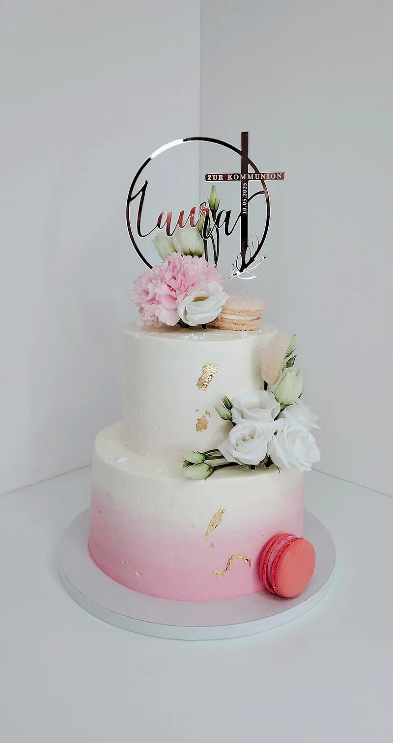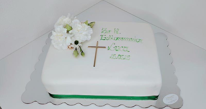 Ob klassische Designs oder individuelle Kreationen, wir haben für jeden Geschmack etwas Passendes. Auch für die Kommunion bieten wir passende Torten an. Feiern Sie diesen besonderen Anlass mit einer Torte, die Ihre Gäste beeindrucken wird. Unser Team von talentierten Konditoren zaubert köstliche Torten, die nicht nur optisch ansprechend sind, sondern auch Ihren Gaumen verwöhnen.