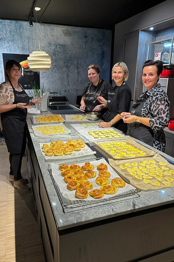 In unserer Backstube finden kleine Gruppen von 5 bis 10 Personen Platz. Für größere Gruppen organisieren wir gemeinsam mit unserem Supperclub-Partner in Linz besondere Backerlebnisse, ideal für Firmenveranstaltungen, Teambuildings oder Weihnachtsfeiern.