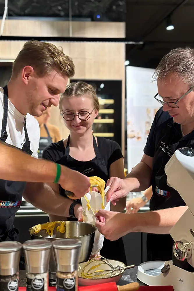Unsere erfahrene Konditormeisterin führt Sie Schritt für Schritt durch die Kunst des Backens und steht Ihnen mit Rat und Tat zur Seite. Sie werden nicht nur neue Fertigkeiten erlernen, sondern auf wertvolle Tipps und Tricks erhalten, um Ihre Backkünste weiter zu perfektionieren.